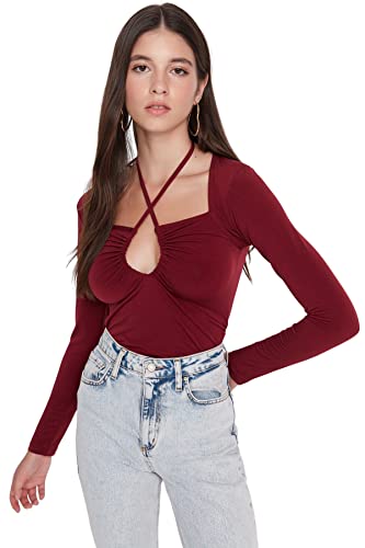 Trendyol Dam Slim Fit Basic Halterneck stickad blus, vinröd, M, Vinröd, M