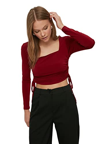 Trendyol Dam figursydd fyrkantig krage stickad blus, Vinröd, L