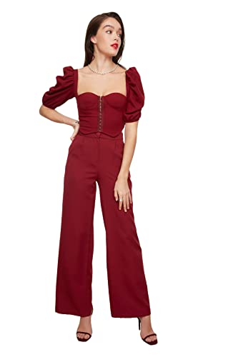 Trendyol Dam anpassad standard fyrkantig krage vävd blus, Vinröd, 64 SE