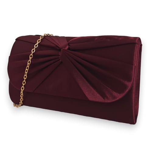 Satin veckad stil brud bal bröllop kväll koppling fest handväska handväska, Vinröd/rödbrun