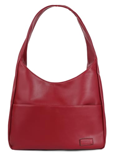 Pocadri Handväska för damer, chic, av veganskt läder, tygväska, tygpåse, snygg, avslappnad, trendig, stor, mjuk axelväska, Vinröd, One Size