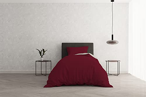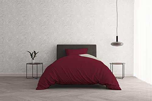 Italienska sängkläder påslakanset "naturlig dubbelsidig enfärgad väska lakan och örngott, bomull, vinröd/gräddvit, dubbel