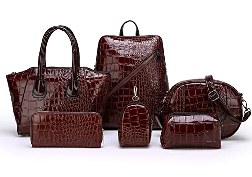 Dam 6 delar handväska set hobo-koppling topp handtag väskor skolväskor crossbody väskor mini ryggsäck gatumode fritid resväska vinröd