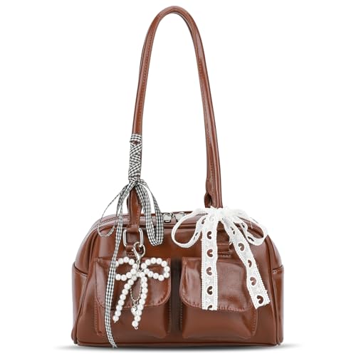 HiTotes Y2K axelväska rosett handväska för kvinnor läder vinröd väska Y2K väska röd väska Ita väska japansk tygväska estetisk kokettväska, A01-brun, 29cm
