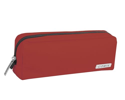 Comix - Rektangulärt fodral, lätt och kompakt, lätt att bära och förvara i din ryggsäck eller väska, perfekt för skola, universitet och arbete, med praktisk dragkedja, 22 x 8,5 x 5 cm, vinröd, Vinröd,