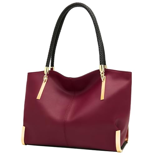 FOXLOVER Stor kapacitet bärväskor för kvinnor, kvinnors topphandtag väskor mode axelväskor plånböcker minimalistisk design, Vinröd – matt