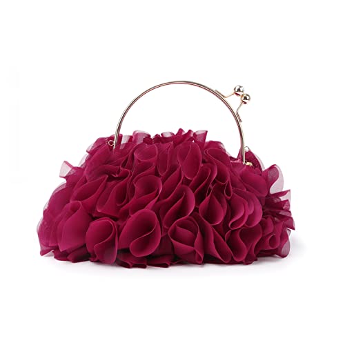 Jywmsc damer blommor clutch plånböcker satin blomma kväll väska fest bal handväskor, Vinröd, Retro