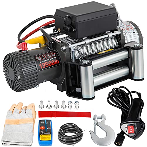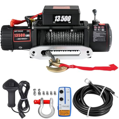 VEVOR 12 V vinsch 13 500 pund/6123 kg motorvinsch 12 V DC elvinsch med Φ1 x 2438,4 cm syntetiskt rep aluminium rep trådbunden fjärrkontroll IP55 för dragning av terrängfordon, jeeps båtar