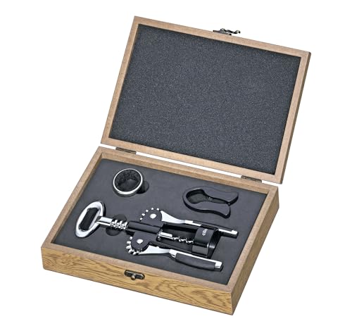 cilio Vinset Pimonte 3 delar, servitörskniv med tvåstegsspak, integrerad folieskärare, flasköppnare, droppfångare, trälåda, presentset