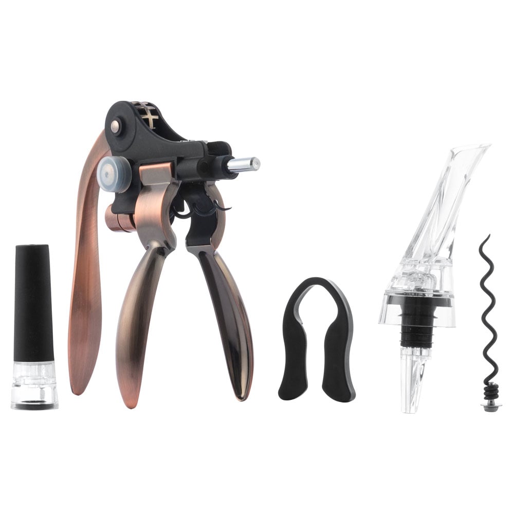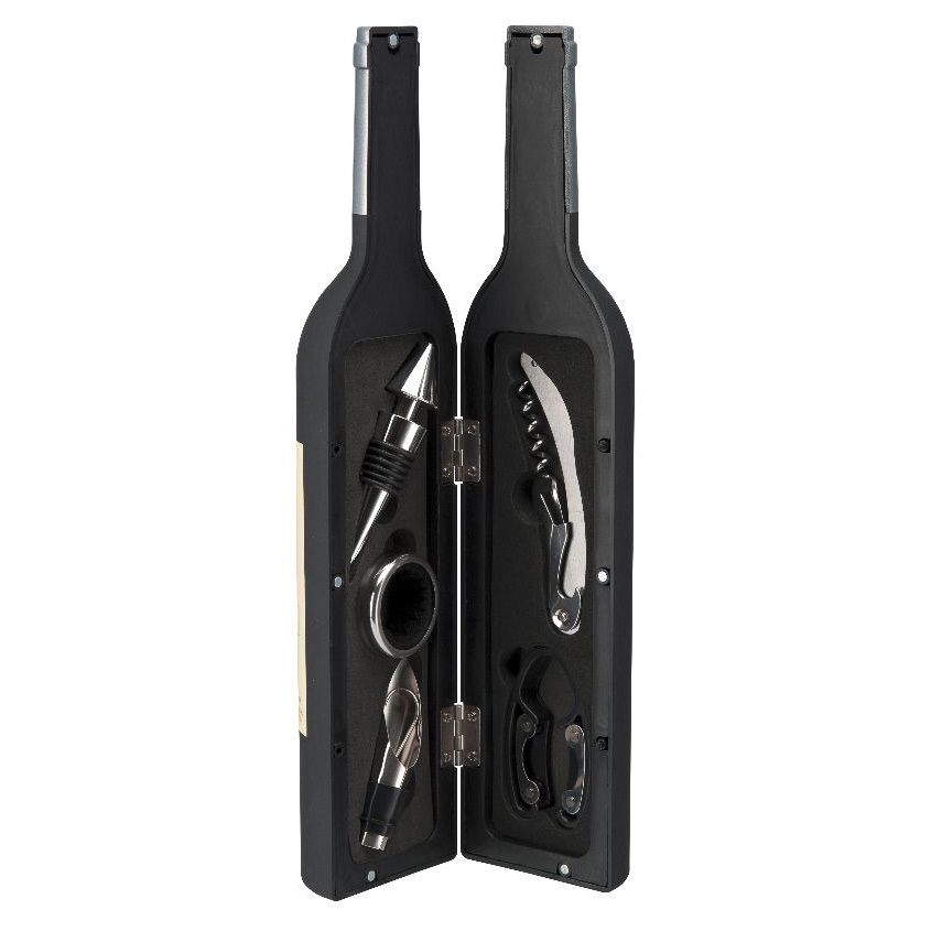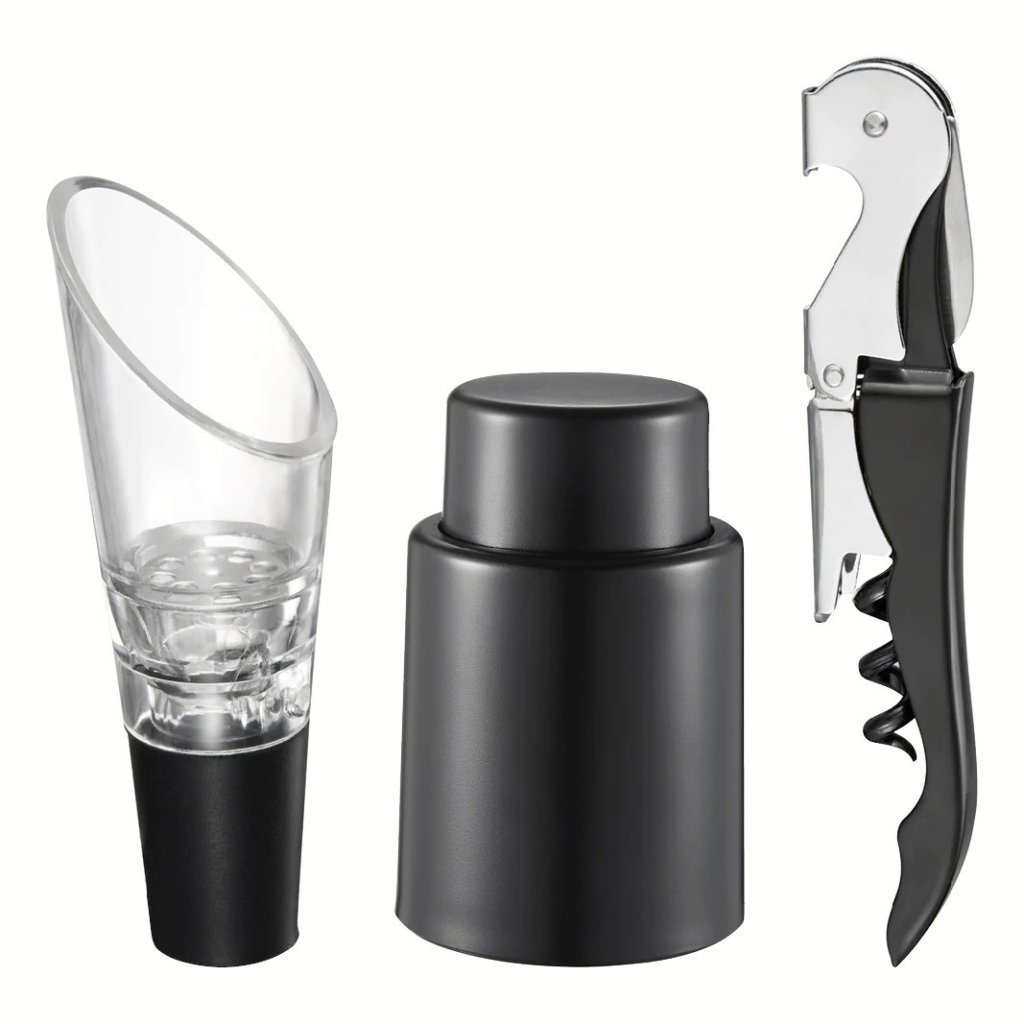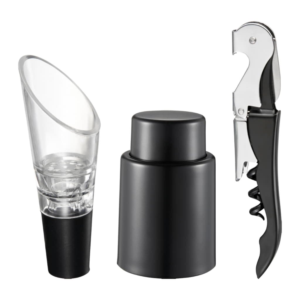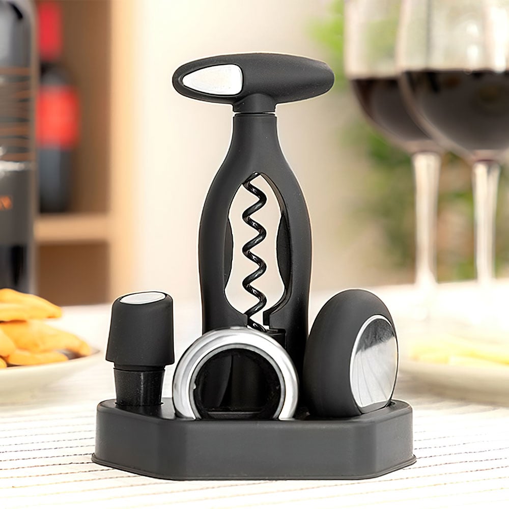 PARENCE - Vinset med 4 tillbehör i rostfritt stål - korkskruv, droppskydd, lock och pip Njut av med elegans