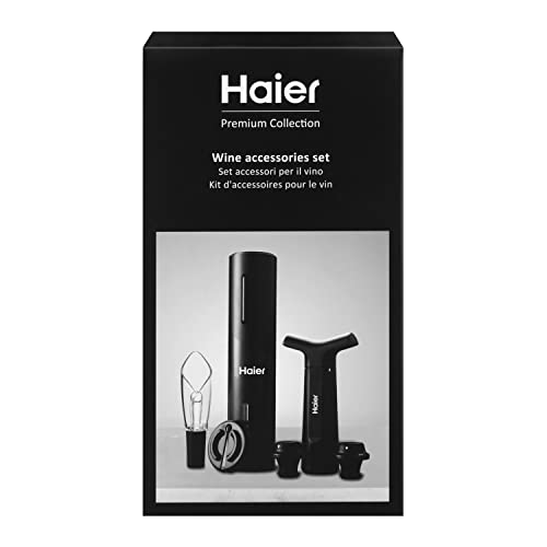 Haier HAWBKIT05 Batteridrivet Elektriskt Vinset, Innehåller Luftare Och Hällpip, Flasköppnare Med Batteri, Folieskärare, 2 Vakuumkorkar, Förvaringsstativ, Premiumkvalitet