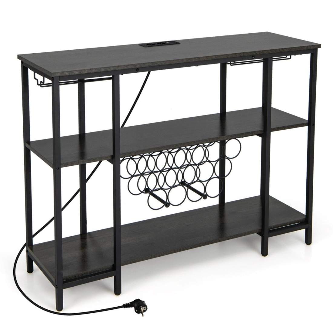 Industriell vinställ med glashållare & hyllor & uttag för 15 vinflaskor Vinskåp Grå