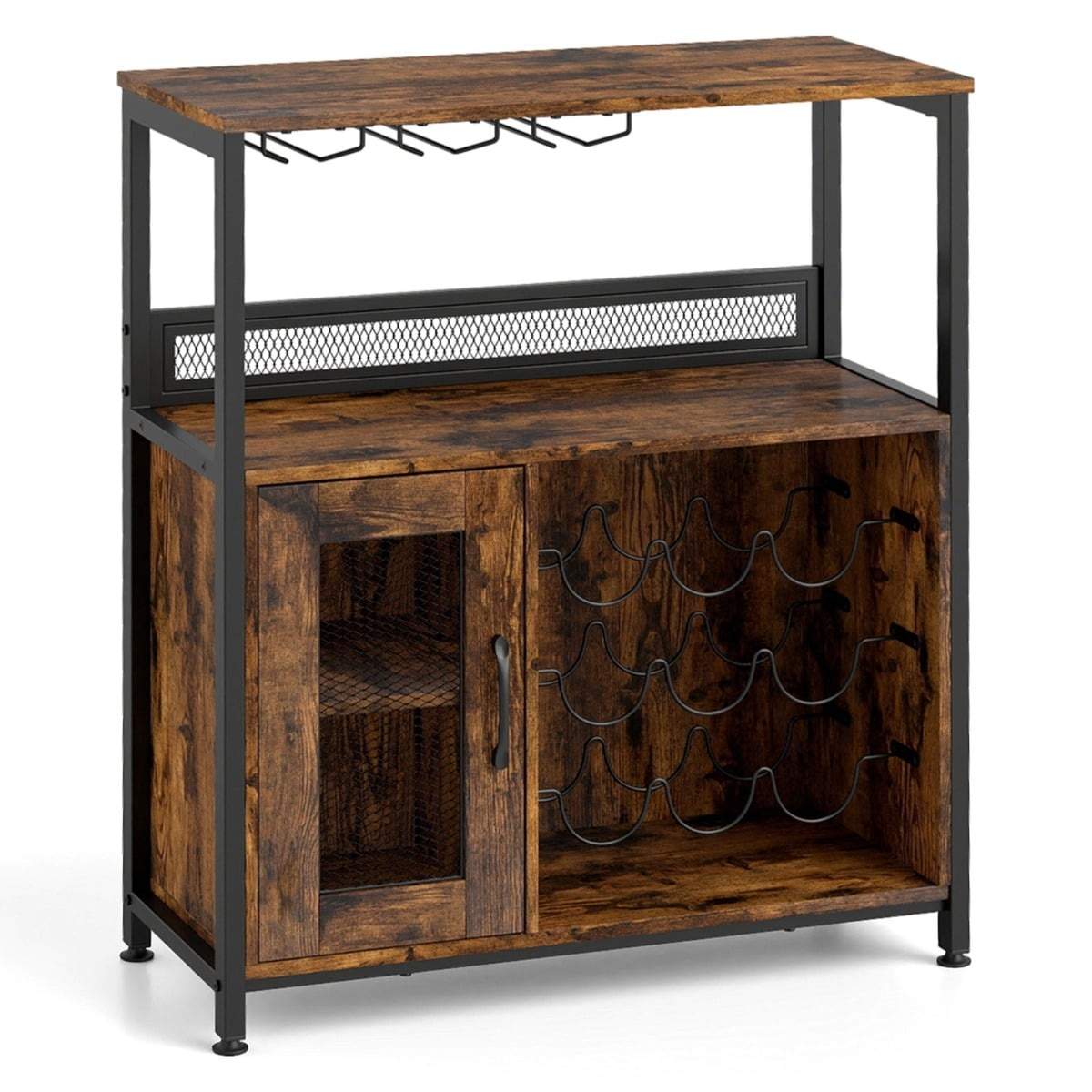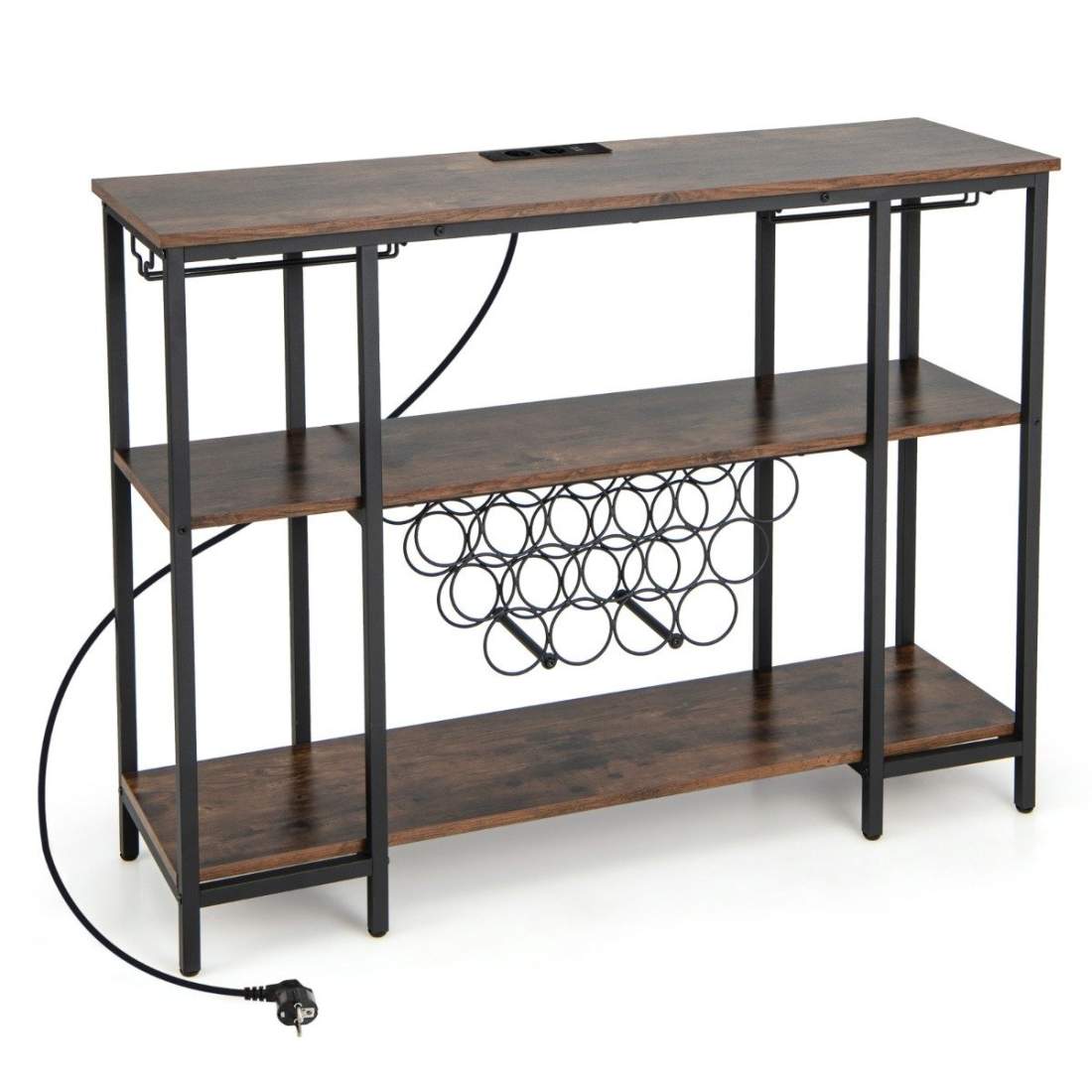Industriell vinställ med glashållare & hyllor & uttag för 15 vinflaskor Vinskåp Brun