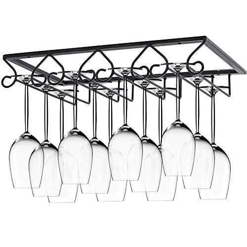 SDFSD Hängande glashållare, vinglashållare, glashållare, hållbar metallvinglashållare med 4 skruvar, för användning i baren, vinskåp, kök (4 fack)