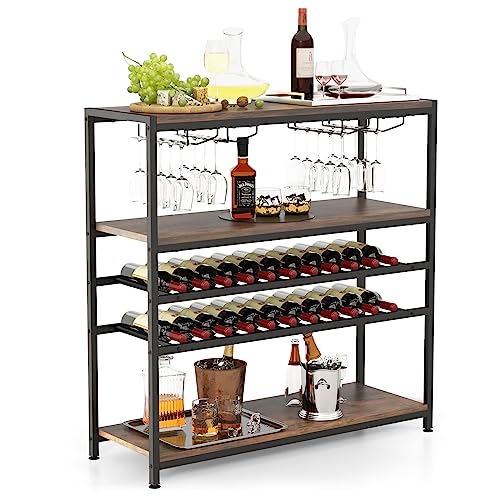 COSTWAY 20 Flaska Vinskåp, Vinflaska Organizer, Förvaring Display, Hylla Trä Vinställ med Glashängare och Flaskhållare (Svart)