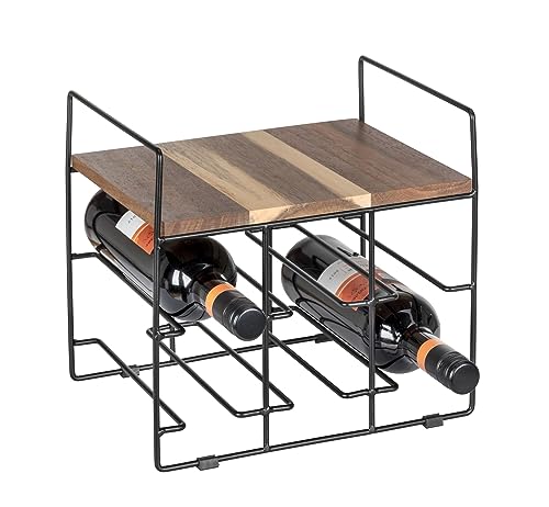 WENKO Nori 71376800 vinställ för 6 flaskor, av pulverlackerad metall, med hylla av FSC-certifierat akaciaträ, 30 x 27,5 x 24 cm, brun/svart, trä