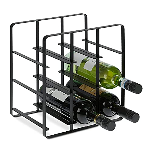 Relaxdays Vinställ i metall, hylla 9 flaskor, fyrkantig, 30,5 x 27,5 x 20 cm, kök, vardagsrum eller bar, svart, järn