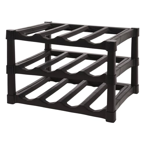 Well Home 3-lagers stapelbar PP vinställ i svart färg för 12 flaskor - 39 x 30 x H25 cm