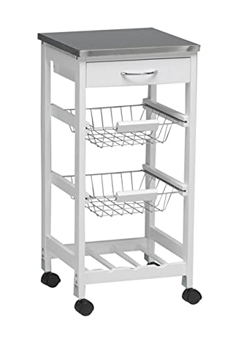Kit Closet 7040028012 rostfritt stål köksvagn med korgar och ett vinställ i trä