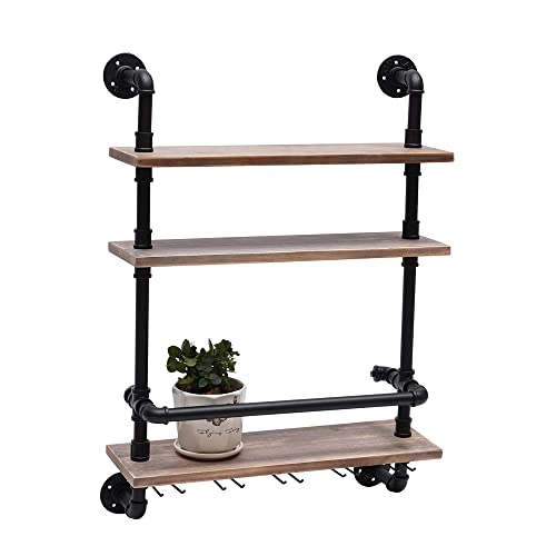 XUEMANSHOP Vinställ i trä för flaskor, 60 cm/90 cm industriella vägg-vinhyllor med glashållare, 3-våningshyllor vägghållare för upphängning, retrofärg (60 cm)