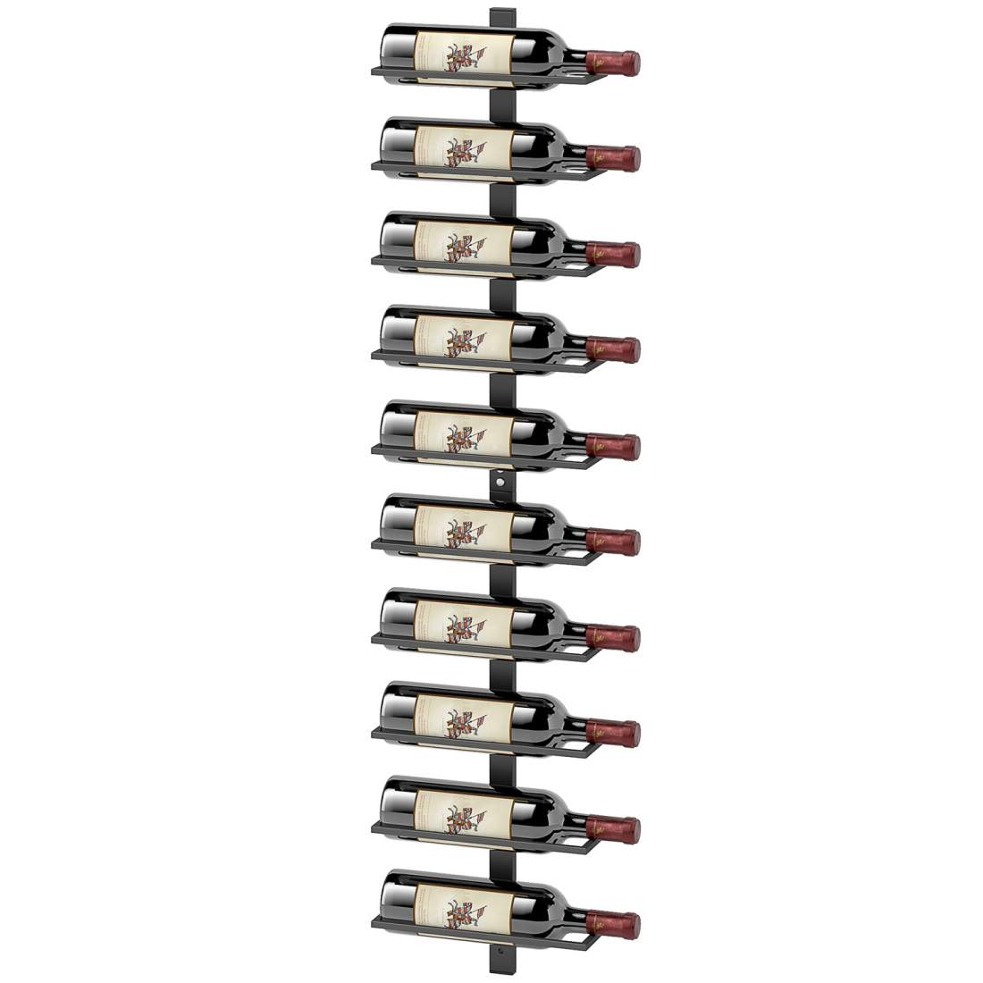 Vinställ Flaskställ för 10 vinflaskor, väggmonterad flaskhållare Stålförvaringsställ, Vinflaskställ för kök, matsal Svart