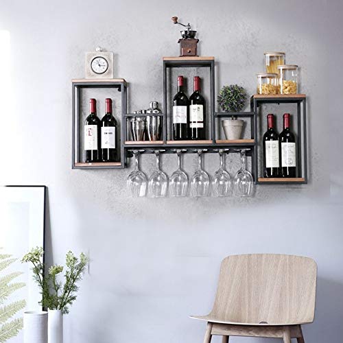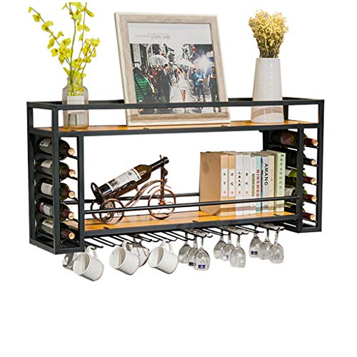 Vinställ trä med glashållare väggmonterad vinglashållare hylla hängande skena | metall vinställ med glashållare | vinflaskhållare vägg hängd | flaskhylla för kök skåp källare