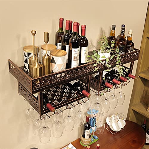 Vinställ Takhängande Vinflaskhållare Vintage Väggmonterad Guld Metallhyllor Stemware Glasögon Förvaringshylla för bar, matsal, kök - Justerbar höjd (Storlek: 60cm*35cm*16cm)