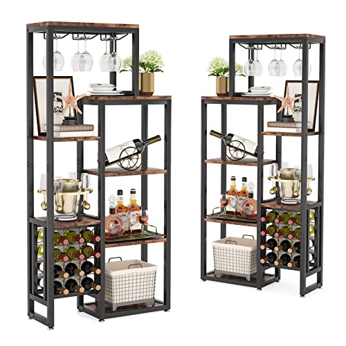 Tribesigns [2 st vinställ fristående golv, 5-nivås vinbagarställ med glashållare och vinförvaring, industriell vinhylla vinbarskåp för bar, kök, matsal (rostbrun)