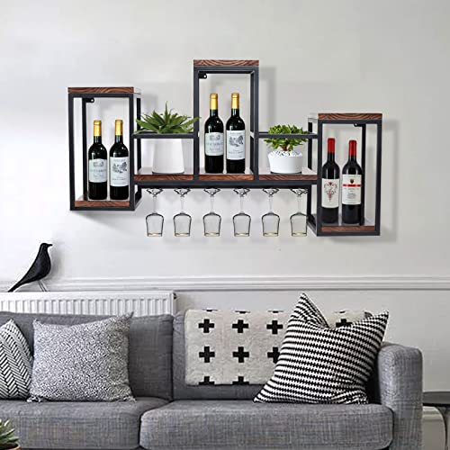 Giyiprpi vägg, vinhylla, flaskhylla för 6 flaskor, metall, vinställ, hängande väggmontering, vinflaskhyllor, vägghylla, vin, förvaringshylla för kök, matsal, bar (eben 6)