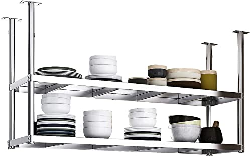 Hängande takhylla Hängande vinställ, 2-lagers takflaskställ i rostfritt stål, Vintage Display Vinförvaringshållare för Underskåp, Kök, Bar (Färg: Silver, Storlek: 120 x 35 x 80 cm needed
