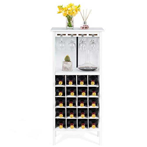 COSTWAY Vinskåp för 20 flaskor, vinställ trä med glashållare, flaskställ, vinställ för kök, bar, 42 x 24,5 x 96 cm (vit)