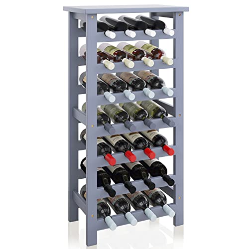 SMIBUY bambu vinställ, 28 flaskor displayhållare med bordsskiva, 7-vånings fristående förvaringshyllor för kök, skafferi, källare, bar (Grått)