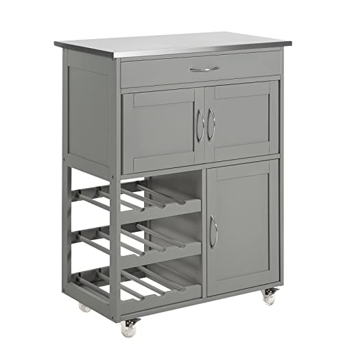 SoBuy Köksvagn med hjul – Multifunktionell rullande förvaringsvagn, köksö med vinställ – Mobil skänk för små kök, matsal och trädgårdsbruk grå 67x86x38cm FKW45-HG