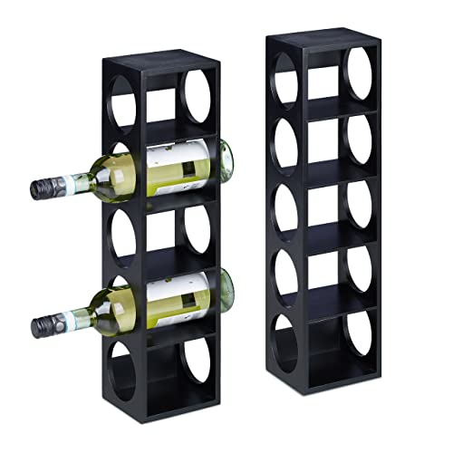 Relaxdays Vinställ för 5 flaskor, set om 2, vinställ bambu, HBT 53 x 14 x 12 cm, stående vinhållare, kök, svart