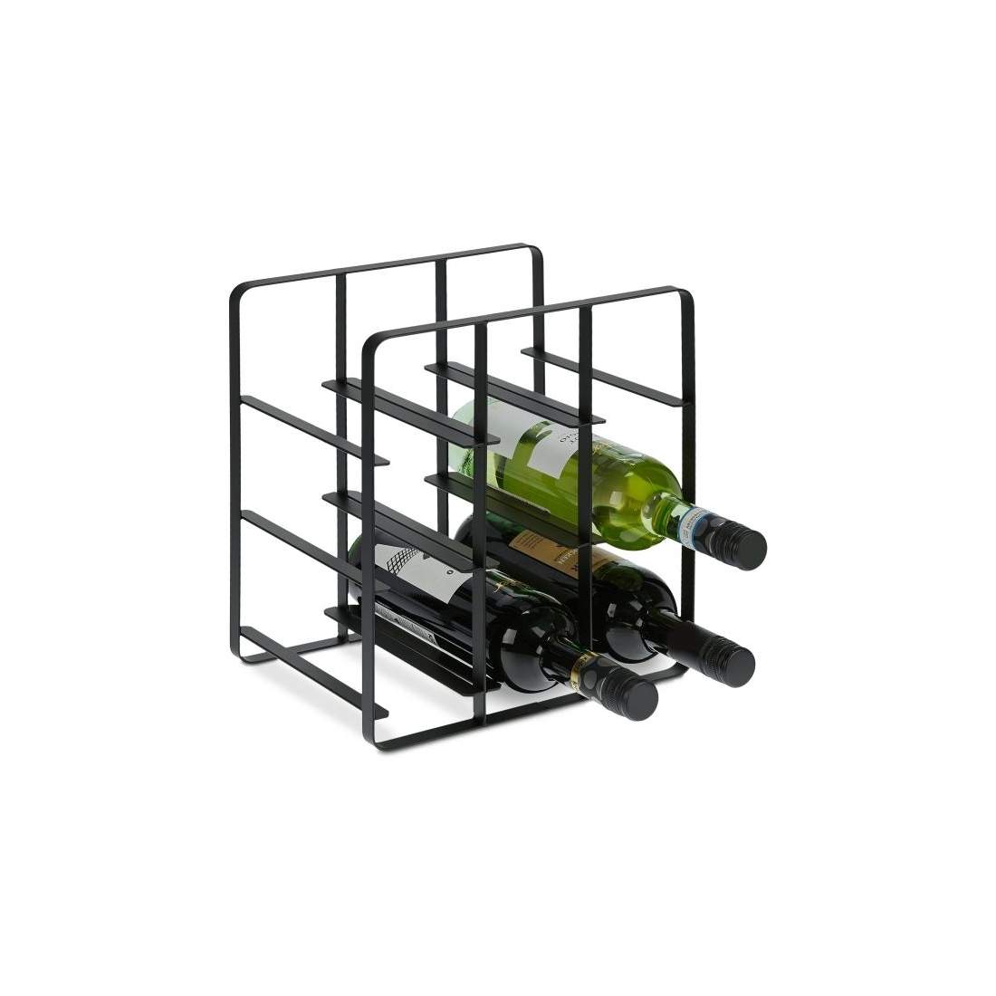Relaxdays Vinställ, 9 flaskor, metall, H x B x D: 37 x 35 x 17 cm, stående vinhållare, kök och bar, vinställ, svart