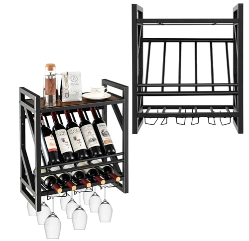 GIANTEX Vinställ väggmontering med glashållare för 10 flaskor och 12 glas, vägg trä och metall, industriell flaskhylla, svävande design 51 x 26,5 x 60 cm