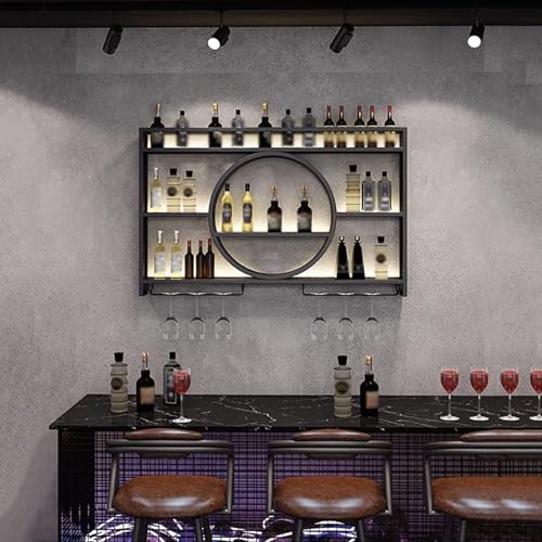 QRBNFRDE Vinställ av metall för väggen, barhyllor, sprithylla, väggmontering med LED-ljus, hängande vinglashållare, hylla för spritflaskor, svävande barskåp, spritflaska