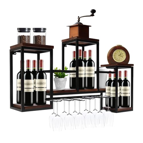 EudoER Modernt väggmonterat vinställ i metall, barenhet, flytande hyllor, väggmonterade vinställ, glasställ, järnvisningsstativ vinhållare med hyllor, för hem, restaurang, barer