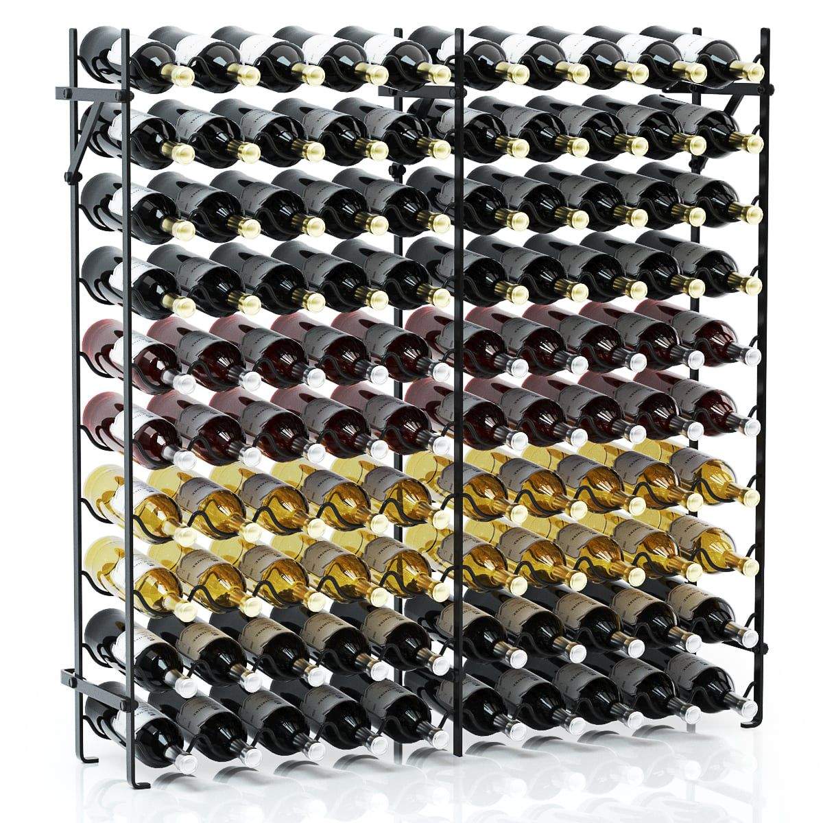 Vinställ i metall med 10 våningar – rymmer 100 flaskor, svart