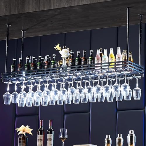 Hängande vinställ, hängande vinglasställ i metall, vinförvaringshållare i två nivåer för bar, för bar, restaurang, café, kök (Svart, 180cm)