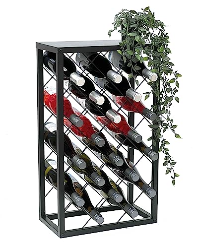Black Metal Wine Rack för 21 Flaskor, Tidlös Design, Härliga Ornament, Bra presentidé för Vänner och Bekanta, med 88 Cm Höjd, 34 Cm Bredd, 20 Cm Djup, Gjord Av Metall, Vinställ