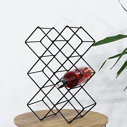 Relaxdays Vinställ, 9 flaskor, metall, H x B x D: 37 x 35 x 17 cm, stående vinhållare, kök och bar, vinställ, svart