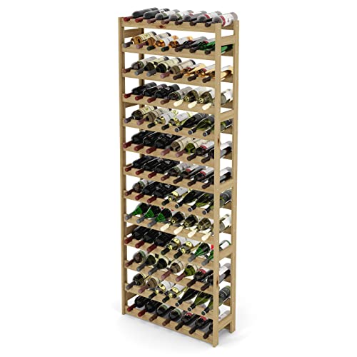Lenmar, vinställ av trä för flaskor, natur, RW-1, vin, flaskhylla, källarhylla, hyllor, flaskhållare (natur, RW-1-91, 198 x 72,5 x 25, 13 liggande, 91 flaskor)