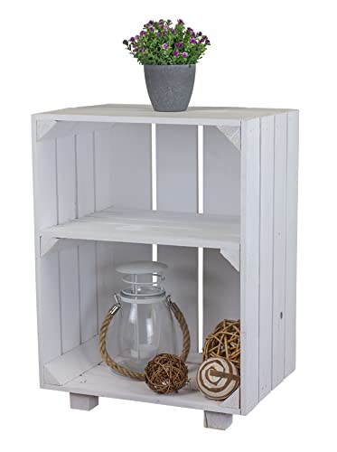 Kistenkolli Altes Land sängbord bord vit/natur/flammat mått ca 30 x 40 x 55 cm hyllåda flaskställ vinställ äppellåda/vinlåda (vit)