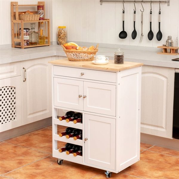 Köksförvaringsvagn med vinställ – Vit & bambu