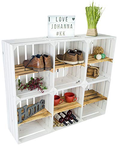 Uppsättning av 6 Johanna vit med flammigt inlägg tvärgående vinställ lådhylla fruktlådor vinlådor hyllådor klänning/skohylla