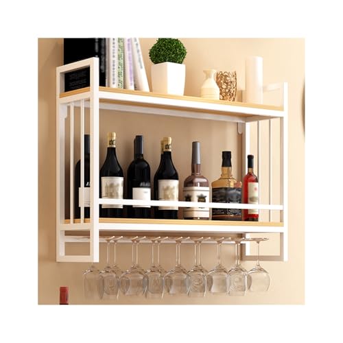 YFAURNDE Flaskhylla,Metall vinställ,Vinställ,Vägghängt vinställ,Väggmonterat vinställ,Smidesjärn hängande vinställ,Modern Minimalistisk hängande bägareställ(White frame wood,60cm/23.62in)