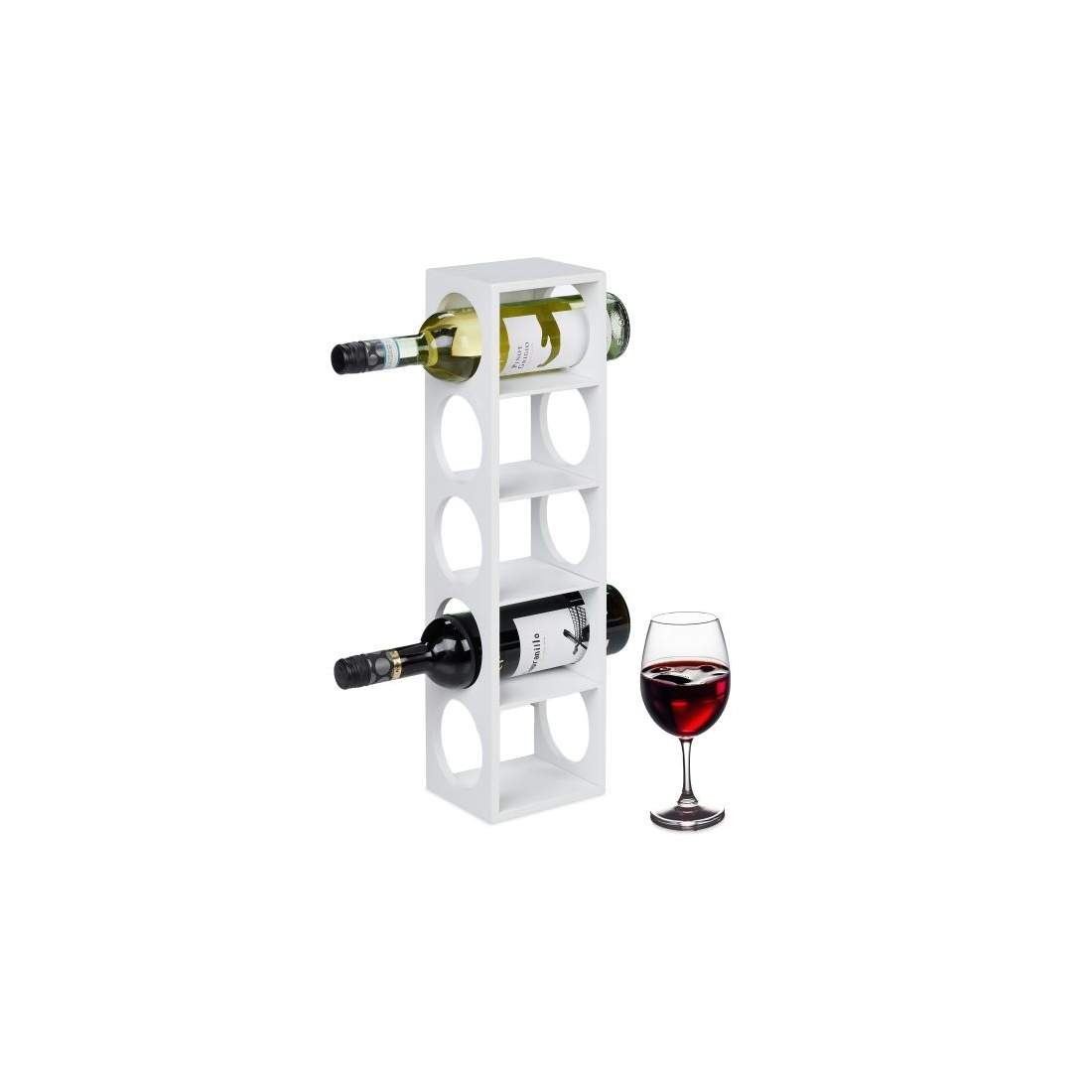Relaxdays Vinställ för 5 flaskor, vinställ bambu, HBT: 53 x 14 x 12 cm, stående vinflaskhållare, kök, vit