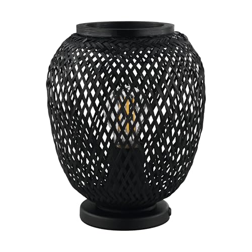 Eglo Bord Dembleby 1, 1 glödlampa bord vintage, natur, hygge, sänglampa träkorg flätad i svart, lampa med strömbrytare, stål, E27-sockel