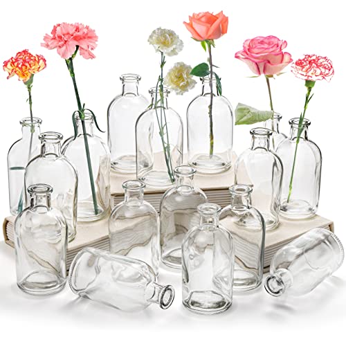 YOUEON 16-pack levande knoppvaser klart glas blomvas 236 ml dekorativa glasflaskor liten vintage blomma flaska bord mittpunkt dekoration för hem bröllop fest evenemang kontor modern dekor klar